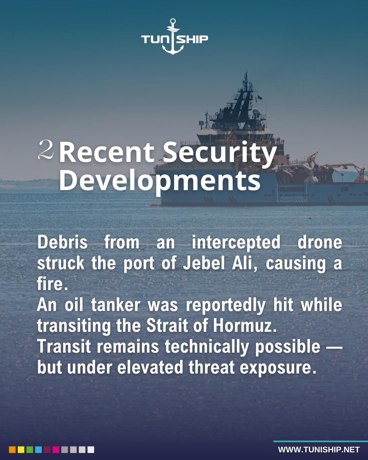 * Drone debris caused a fire at Jebel Ali Port